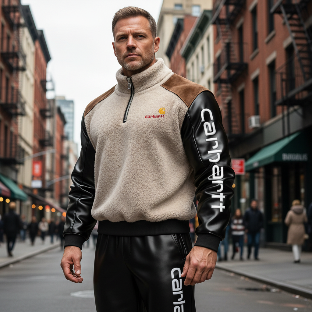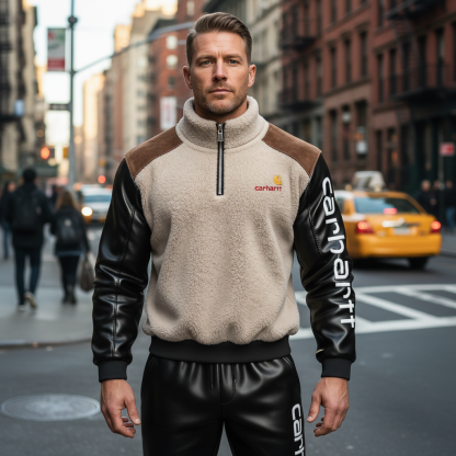 Men's Retro Casual Embroidery Winter Fleece And Leather Tracksuit